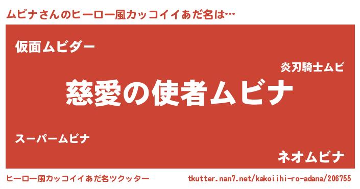 | 女子向けラノベタイトル風あだ名 | 『死神ムビナの再婚』 |