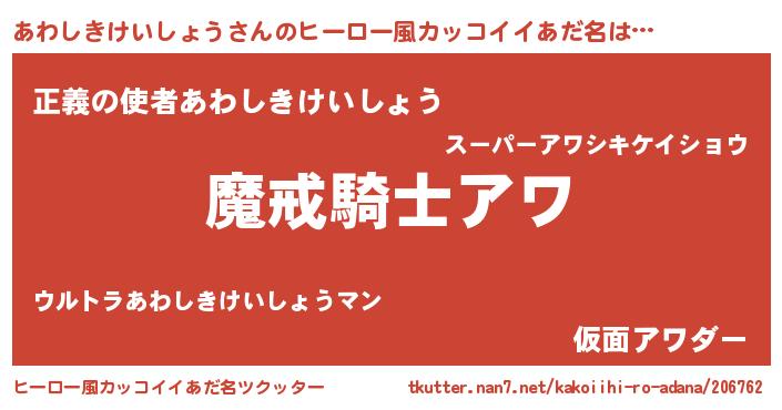 | 胡散臭い通販商品みたいなあだ名 | 『信頼と実績のペンダント…その名も「あわしきけいしょう」』 |