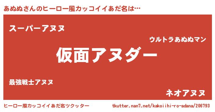 | 男性向けラノベタイトル風あだ名 | 『あぬぬに滅ぼされるだけの簡単なお仕事です』 |