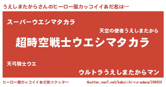 女子向けラノベタイトル風あだ名 | 『うえしまたからなんてお断りですっ。』 |