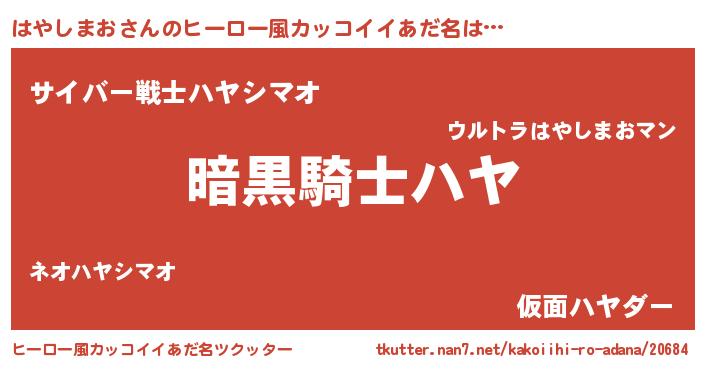 | 欧米人風あだ名 | 『ウサインはやしまお』 |