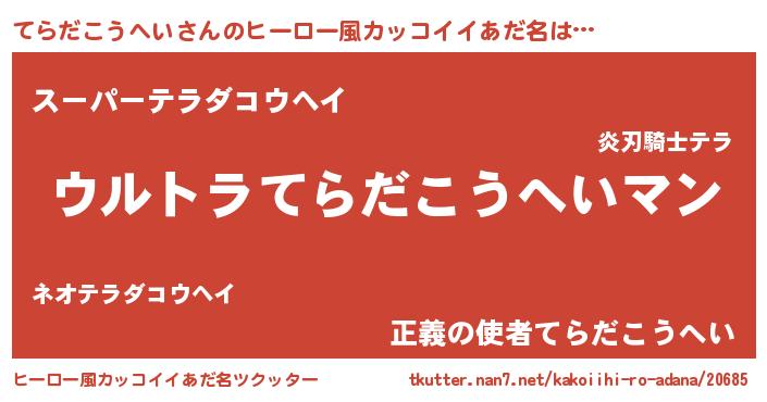 | 男性向けラノベタイトル風あだ名 | 『やはりてらだこうへいの青春ラブコメはまちがっている 』 |