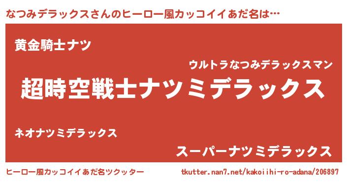 | 女子向けラノベタイトル風あだ名 | 『なつみデラックスなんてお断りですっ。』 |