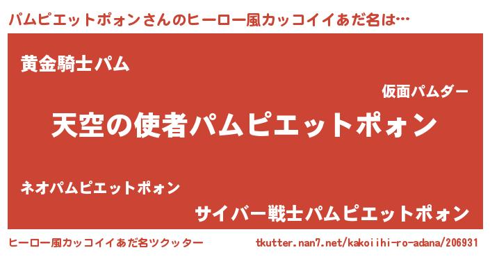 | 男性向けラノベタイトル風あだ名 | 『ノーゲーム・ノーパムピエットポォン』 |