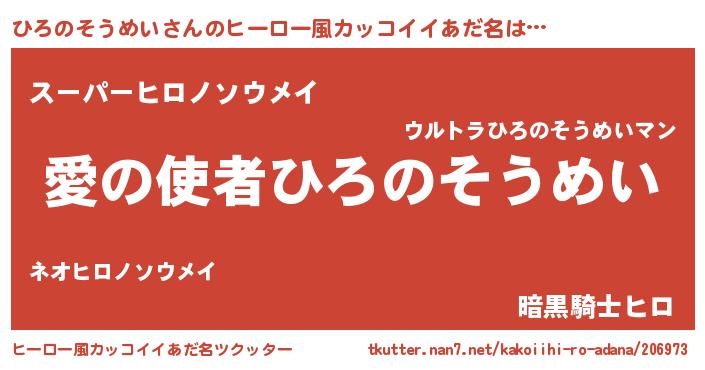 | 男性向けラノベタイトル風あだ名 | 『おまえをオタクにしてやるから、俺をひろのそうめいにしてくれ! 』 |