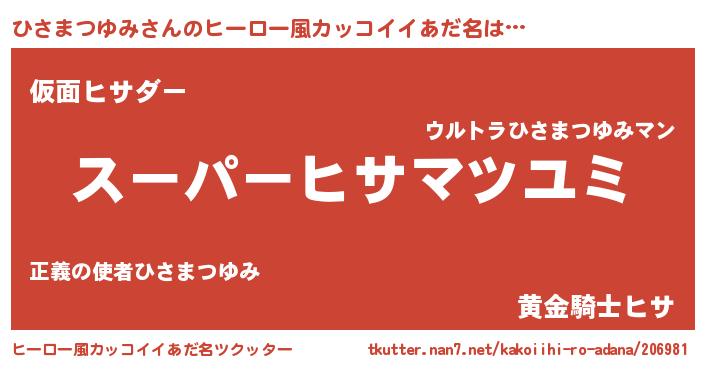 | 男性向けラノベタイトル風あだ名 | 『緋弾のヒサマツユミ』 |