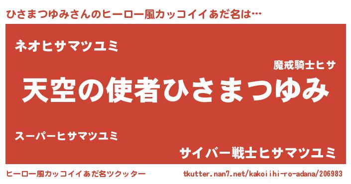 | ヘコむあだ名 | 『ひさまつゆみ(苦笑)』『ひさを』 |