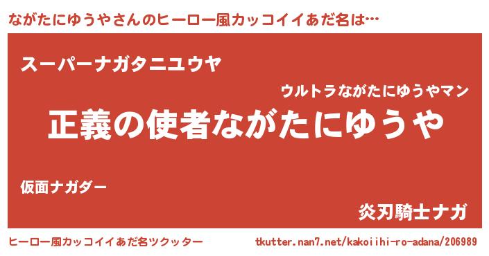 男性向けラノベタイトル風あだ名 | 『おまえをオタクにしてやるから、俺をながたにゆうやにしてくれ! 』 |