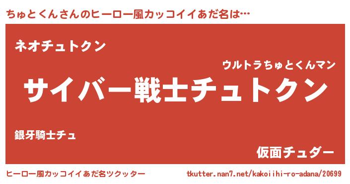 | 女子向けラノベタイトル風あだ名 | 『ちゅとくんの玉の輿計画!』 |