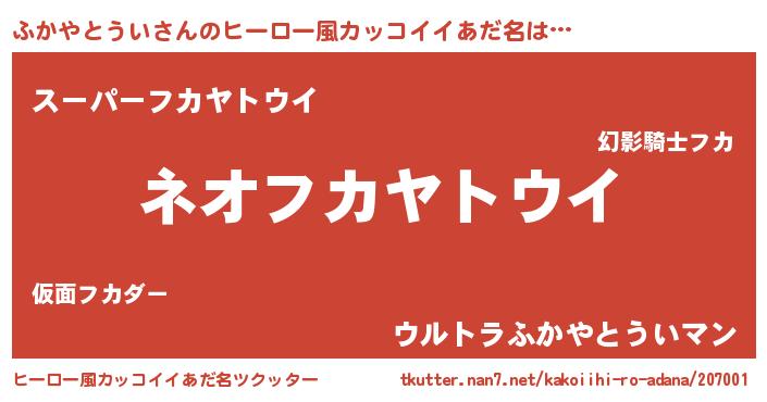 | ヘコむあだ名 | 『ふかやとうい(小並感)』『ふかにー』 |
