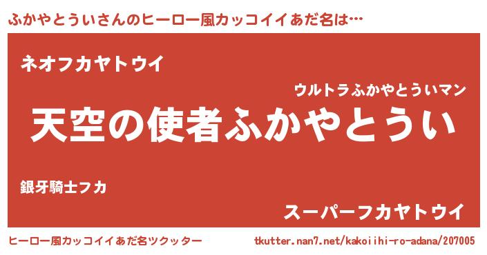 | ヘコむあだ名 | 『ふかやとうい(笑)』『ふかにゅー』 |