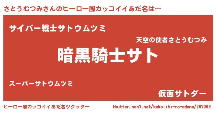 ポケモン風あだ名 | 『ヒサトウムツミ』『サトセウス』 |