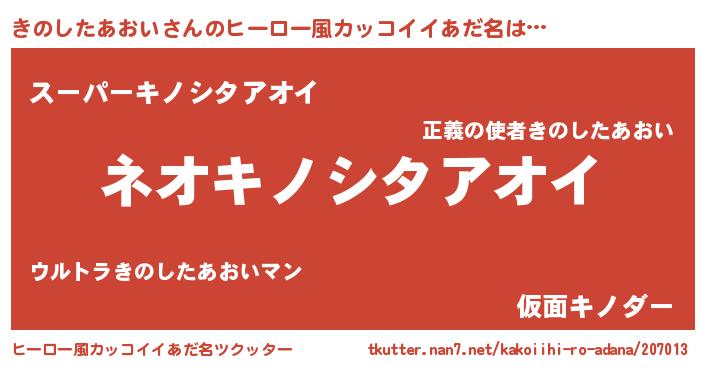 ヘコむあだ名 | 『きのしたあおい(爆)』『きのにゅー』 |