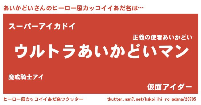 あいかどいさんのヒーロー風カッコイイあだ名をツクッター!