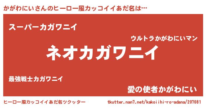 ヘコむあだ名 | 『かがわにい(爆)』『かがにゅー』 |