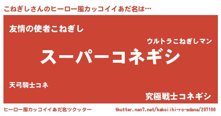 男性向けラノベタイトル風あだ名 | 『こねぎしの憂鬱』 |