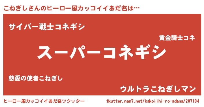 男性向けラノベタイトル風あだ名 | 『転生したらこねぎしだった件』 |