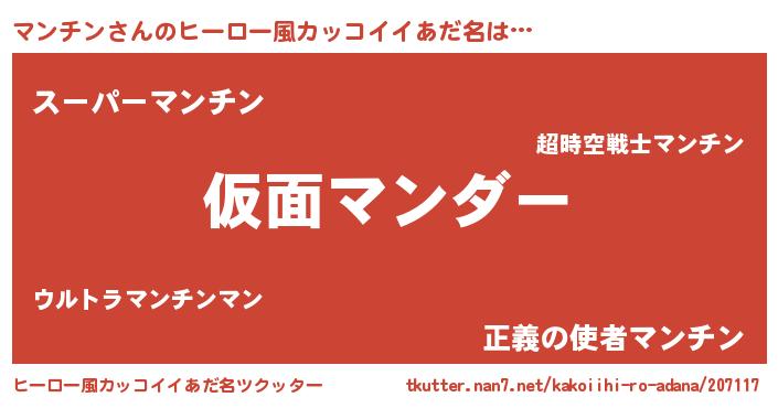 男性向けラノベタイトル風あだ名 | 『魔弾の王とマンチン』『緋弾のマンチン』 |