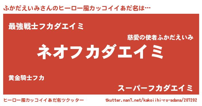 ヘコむあだ名 | 『ふかだえいみ(爆)』『ふかにゅー』 |