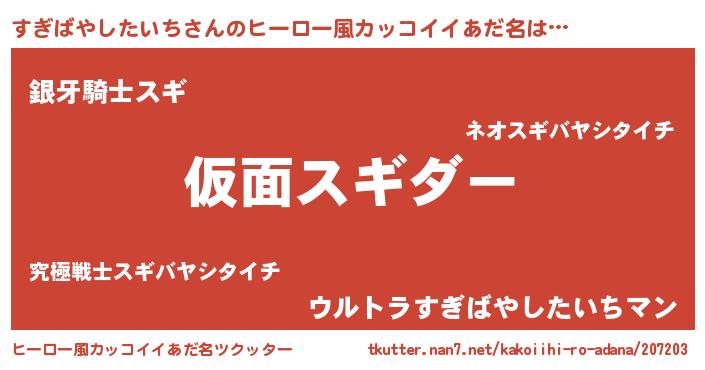 意味不明あだ名 | 『住所不定無職すぎばやしたいち(1歳)』 |
