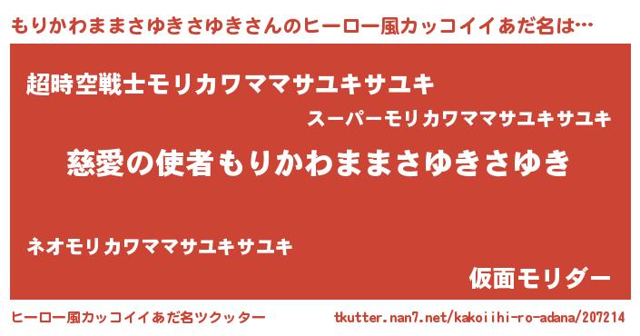 | 男性向けラノベタイトル風あだ名 | 『うちのもりかわままさゆきさゆきが世界を掌握している!』 |