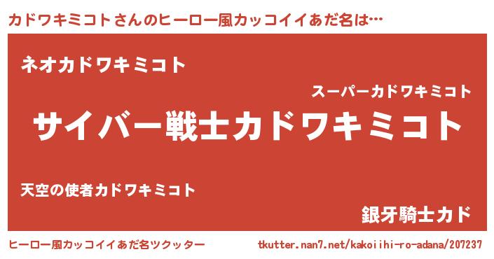 | 意味不明あだ名 | 『自称カドワキミコト』 |