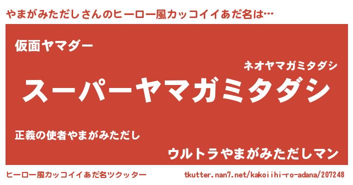 男性向けラノベタイトル風あだ名 | 『やまがみただしの憂鬱』 |