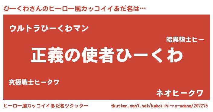 ポケモン風あだ名 | 『ヒックウザ』『ヒークダネ』 |