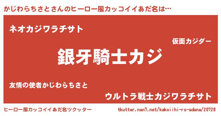 | ポケモン風あだ名 | 『カジゴンZ』『ヒカジワラチサト』 |