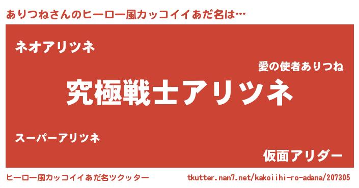 可愛いあだ名 | 『ありうちぇる』『ありつねママ』 |
