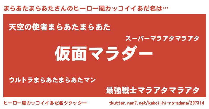 | 男性向けラノベタイトル風あだ名 | 『魔弾の王とまらあたまらあた』 |