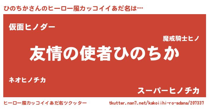 | 男性向けラノベタイトル風あだ名 | 『おまえをオタクにしてやるから、俺をひのちかにしてくれ! 』 |