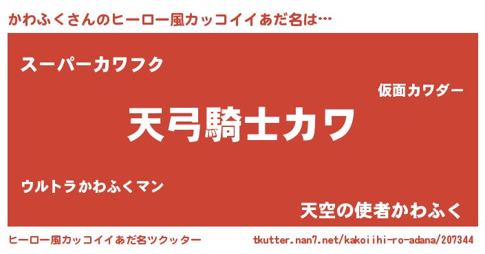 | 男性向けラノベタイトル風あだ名 | 『かわふくの嫁は女の子じゃないと思った?』 |