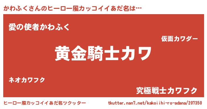 | 意味不明あだ名 | 『とにかく怪しいかわふく』 |