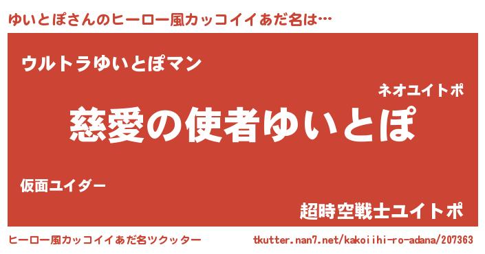 | 男性向けラノベタイトル風あだ名 | 『ゆいとぽ~年齢イコール彼女いない歴の魔法使い~』 |