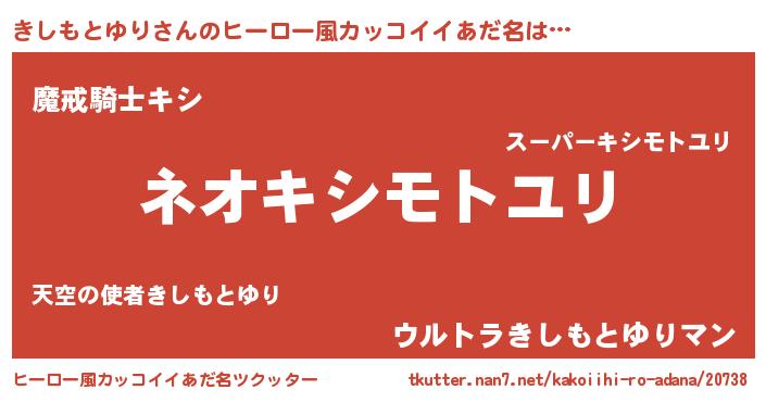 | 女子向けラノベタイトル風あだ名 | 『異世界で失敗しない100のきしもとゆり』 |