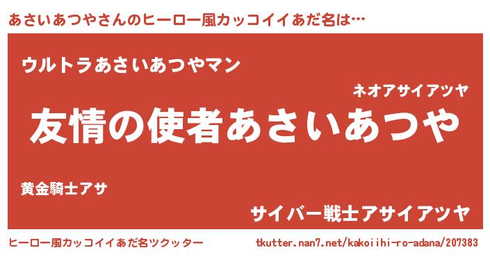 男性向けラノベタイトル風あだ名 | 『はたらくあさいあつやさま!』 |