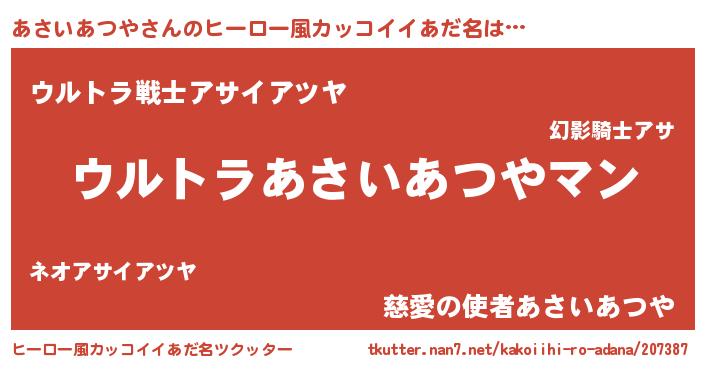 | 男性向けラノベタイトル風あだ名 | 『やはりあさいあつやの青春ラブコメはまちがっている 』 |