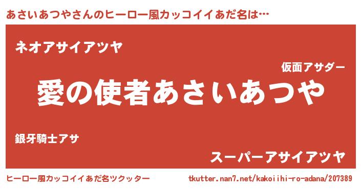 ヘコむあだ名 | 『あさいあつや(笑)』『あさにゅー』 |