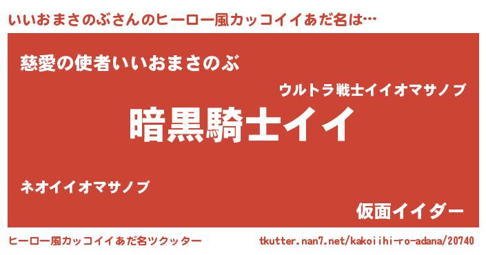 | 女子向けラノベタイトル風あだ名 | 『いいおまさのぶは平凡を望む』 |