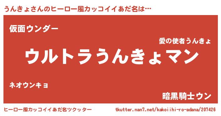 | 男性向けラノベタイトル風あだ名 | 『うちの娘の為ならば、俺はもしかしたらうんきょも倒せるかもしれない。』 |