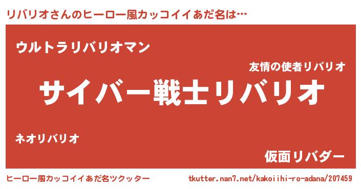 | 女子向けラノベタイトル風あだ名 | 『闇のリバリオ』『リバリオの雑貨屋さん』 |