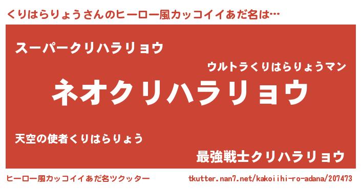 | 胡散臭い通販商品みたいなあだ名 | 『来世でも幸せになれる健康食品…その名も「くりはらりょう」』 |
