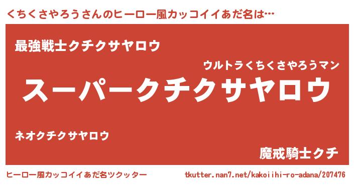 | 男性向けラノベタイトル風あだ名 | 『くちくさやろうの憂鬱』 |