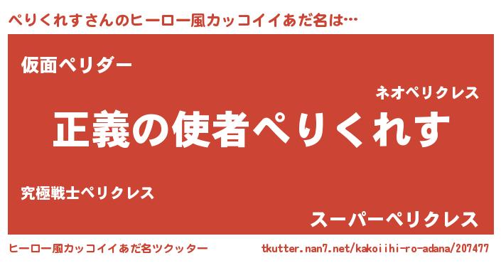 | 男性向けラノベタイトル風あだ名 | 『はたらくぺりくれすさま!』 |