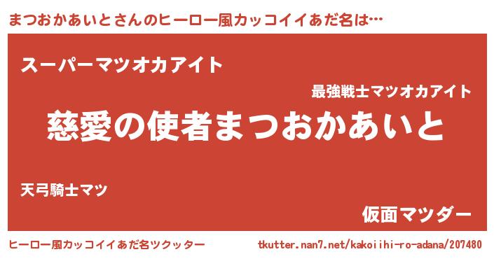 | 胡散臭い通販商品みたいなあだ名 | 『お金では代えられないイリジウム磁石…その名も「まつおかあいと」』 |