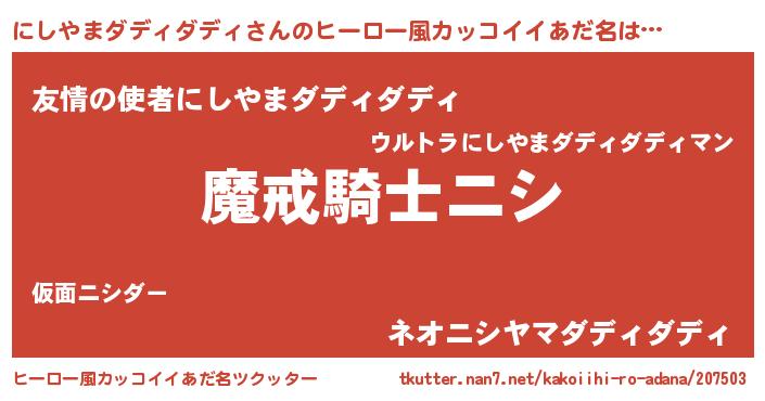 | ポケモン風あだ名 | 『ヒニシヤマダディダディ』『ニックウザ』 |