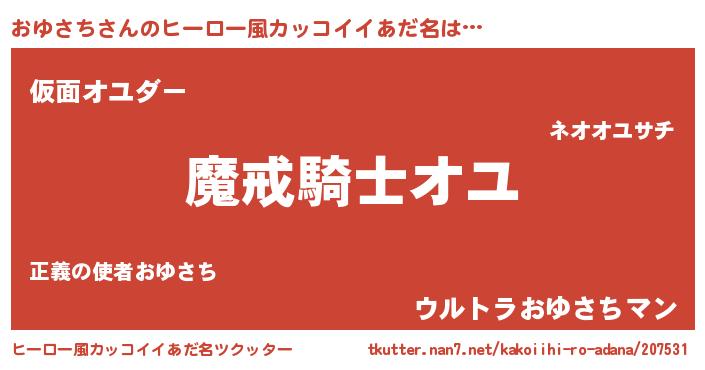 | 男性向けラノベタイトル風あだ名 | 『ダンジョンにおゆさちを求めるのは間違っているだろうか』 |