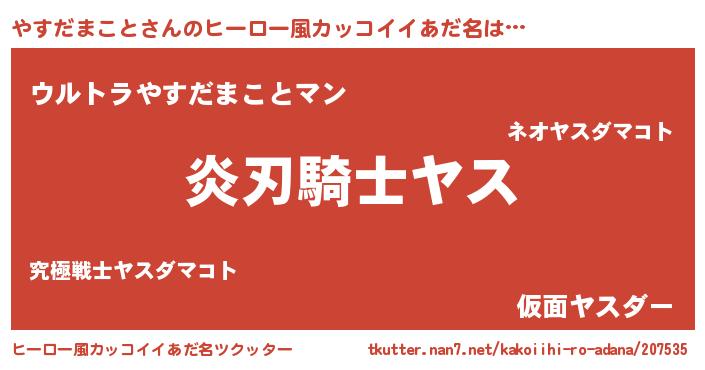 | 男性向けラノベタイトル風あだ名 | 『やすだまことの嫁は女の子じゃないと思った?』 |