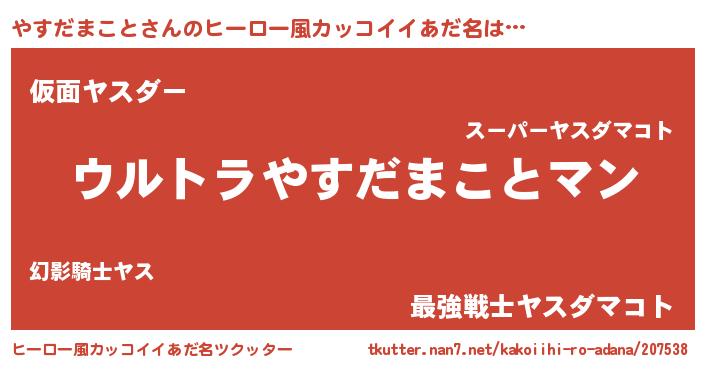 | 男性向けラノベタイトル風あだ名 | 『やはりやすだまことの青春ラブコメはまちがっている 』 |